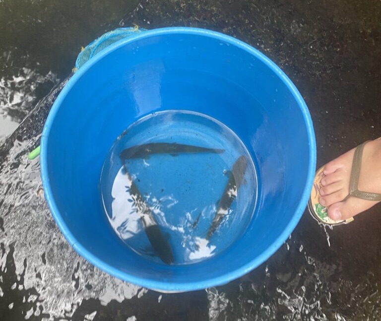 親が魚を捕まえる様子を見せてあげるだけでも良い経験になりました。