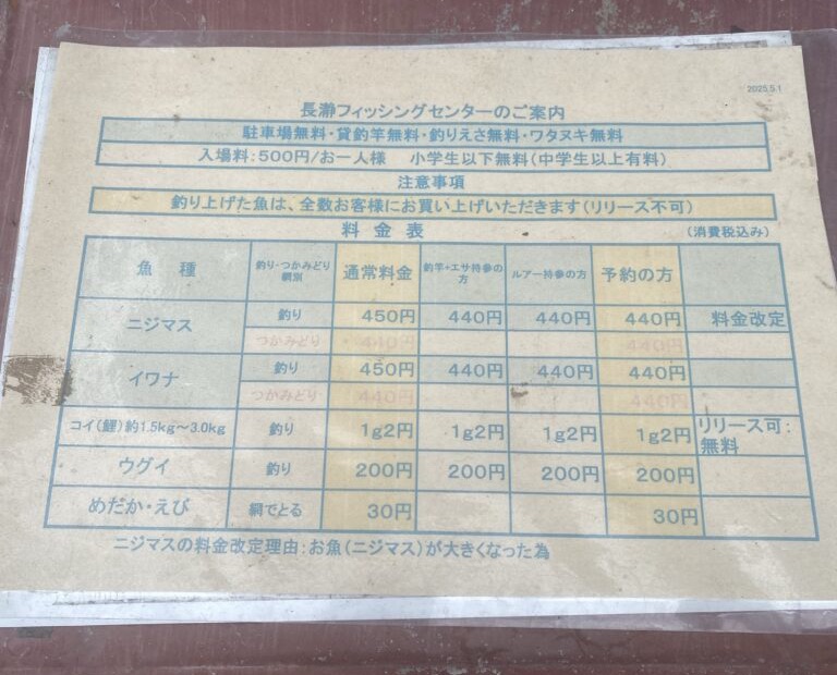 長瀞フィッシングセンターの最大の魅力は、無駄なお金がかかりにくい料金体系です。