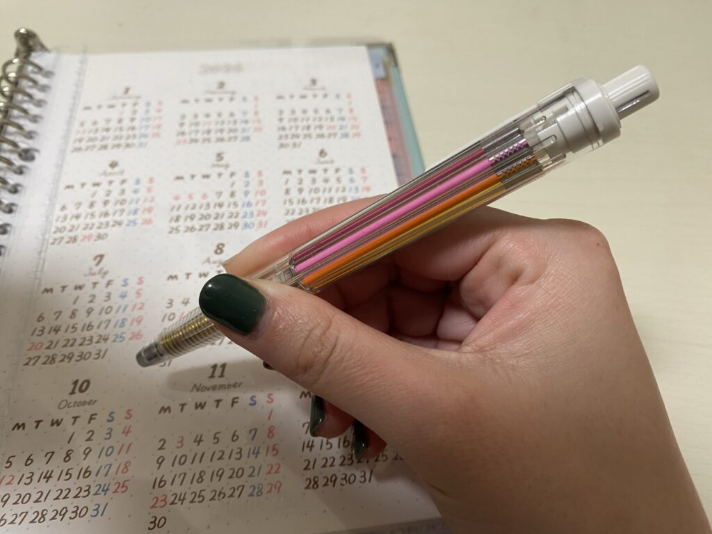 1本で色を切り替えられるので、ペンケースを開けたり何本も持ち替えたりする必要がないのも、嬉しいポイント。