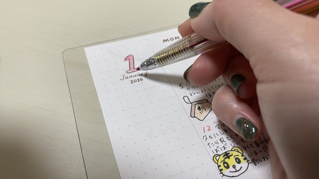 「デコしすぎて読みにくくなる」という失敗が起きにくく、記録用のノートにちょうどいい発色です。