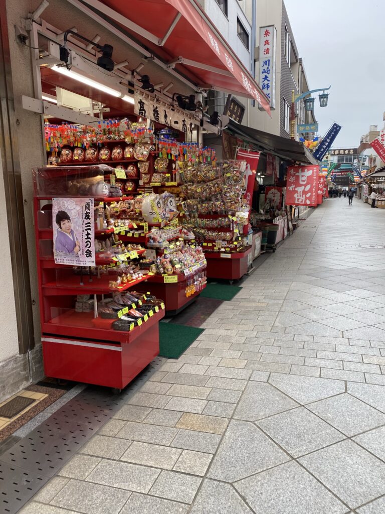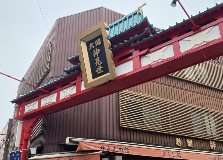 駅から仲見世通りを歩いて向かうと、お団子屋さんやだるま屋さんが並び、観光気分も楽しめます。